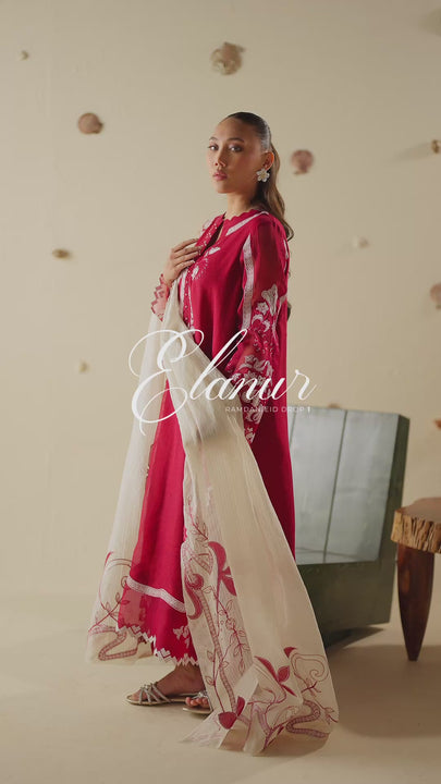 Set on a sheer canvas, this striking ensemble comes alive with intricate appliqués layered with fine resham embroidery, creating depth, texture, and timeless artistry. Paired with a dupatta adorned entirely in appliqué work, the look is bold yet graceful a perfect blend of tradition and statement elegance.
