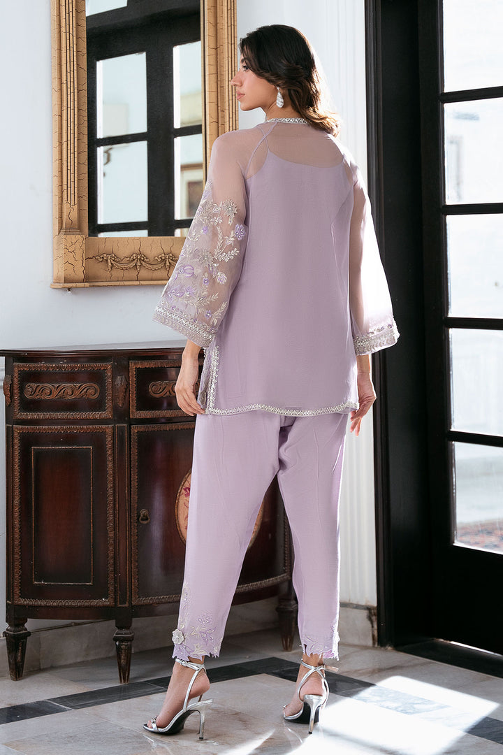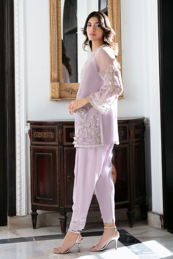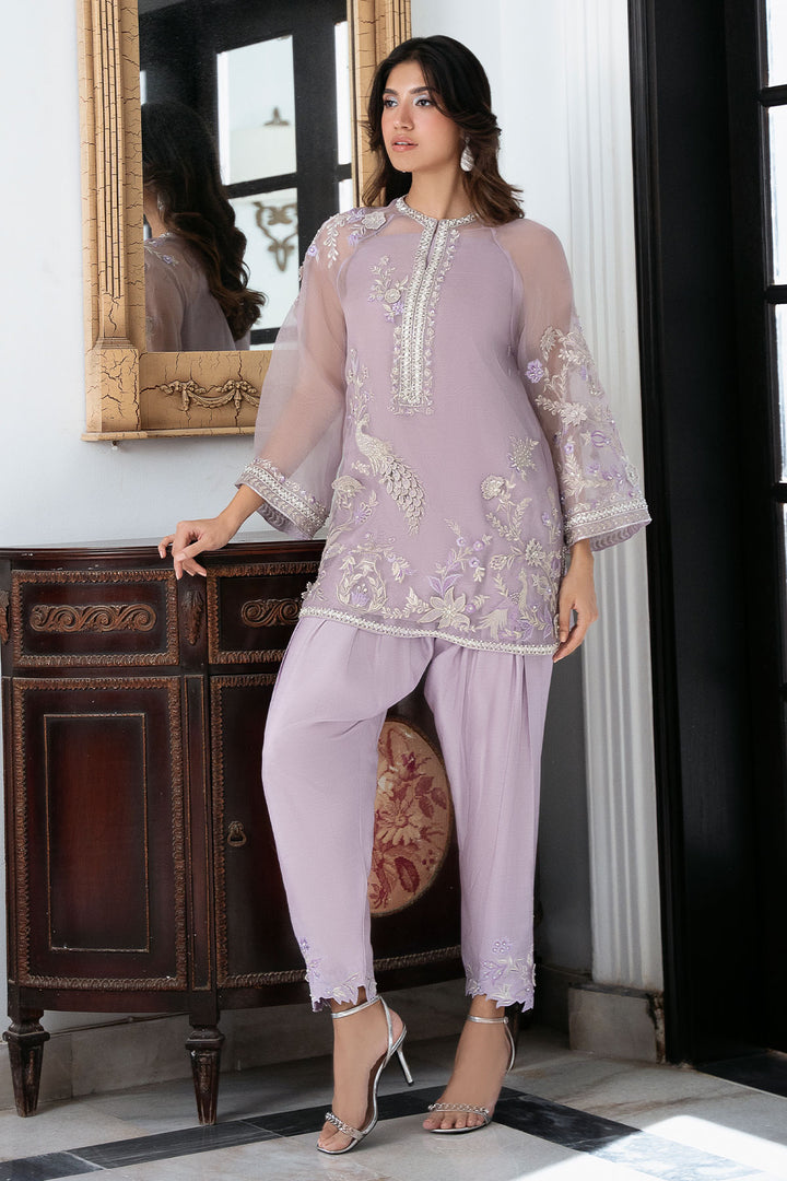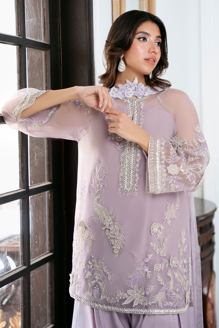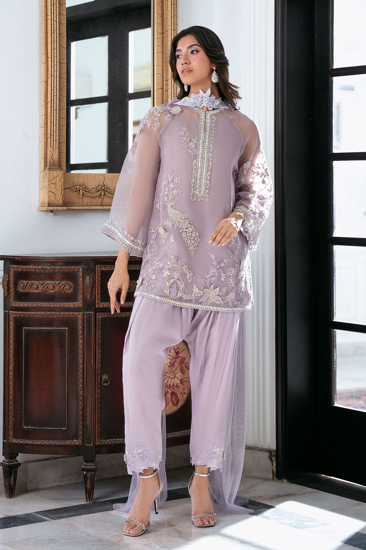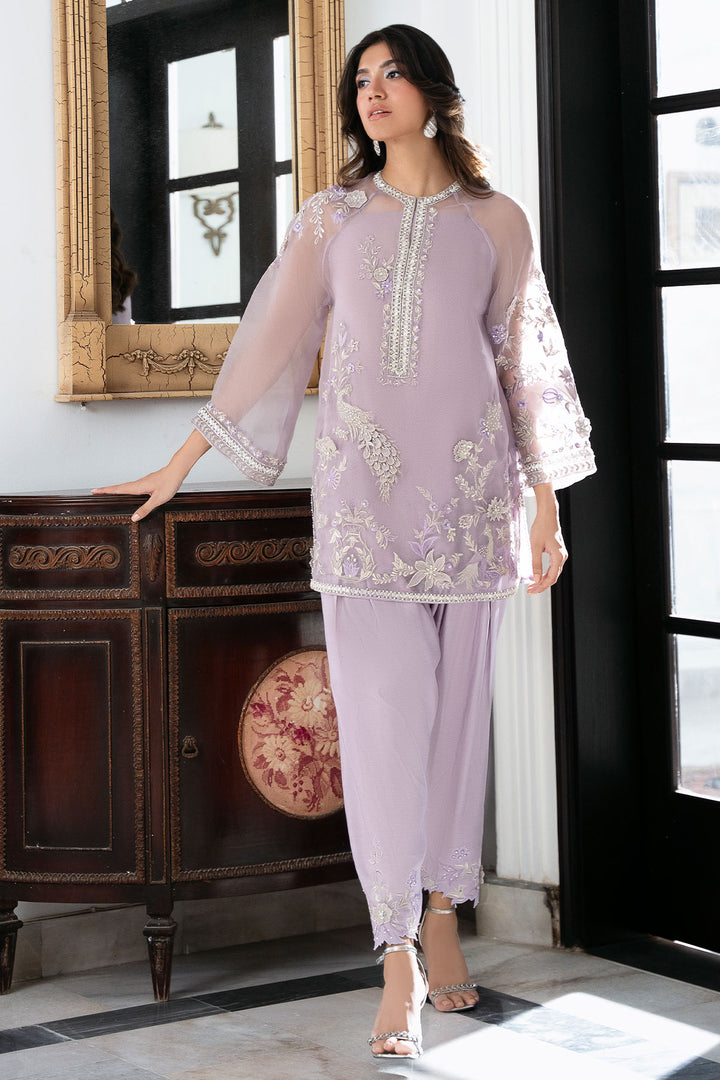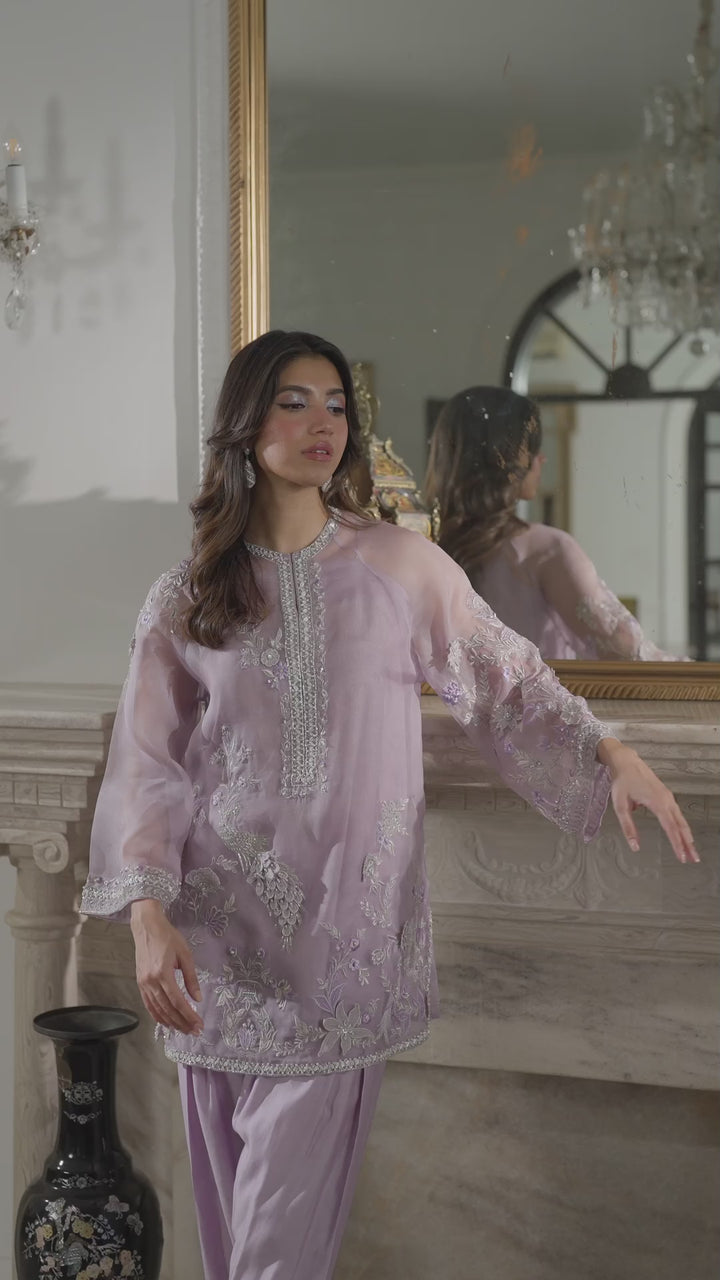 This organza raglan cut short shirt is a true festive favourite, featuring meticulous hand work and striking 3D motives that bring the design to life. The modern cut and soft colour create a look that's instantly captivating. Paired perfectly with a shalwar and flowing dupatta, this outfit is designed to make a truly stylish statement at any celebration.