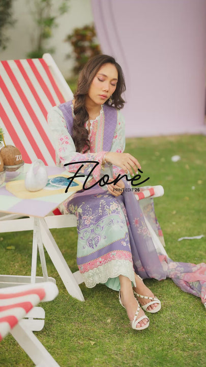 Lilac dreams with a touch of Victorian romance ! This silk printed shirt features delicate French floral motifs and hand-embroidered pearl tassels along the neckline, paired with a matching printed silk dupatta for a truly graceful look.