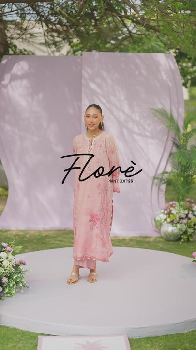 Soft as strawberry cream, this Monarc fabric beauty blooms with watercolor florals, delicate pearls, and whimsical butterfly tassels. A dreamy ensemble where artful details meet feminine grace.