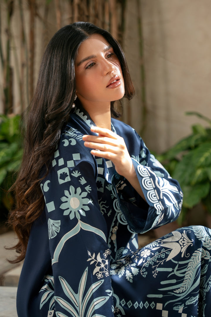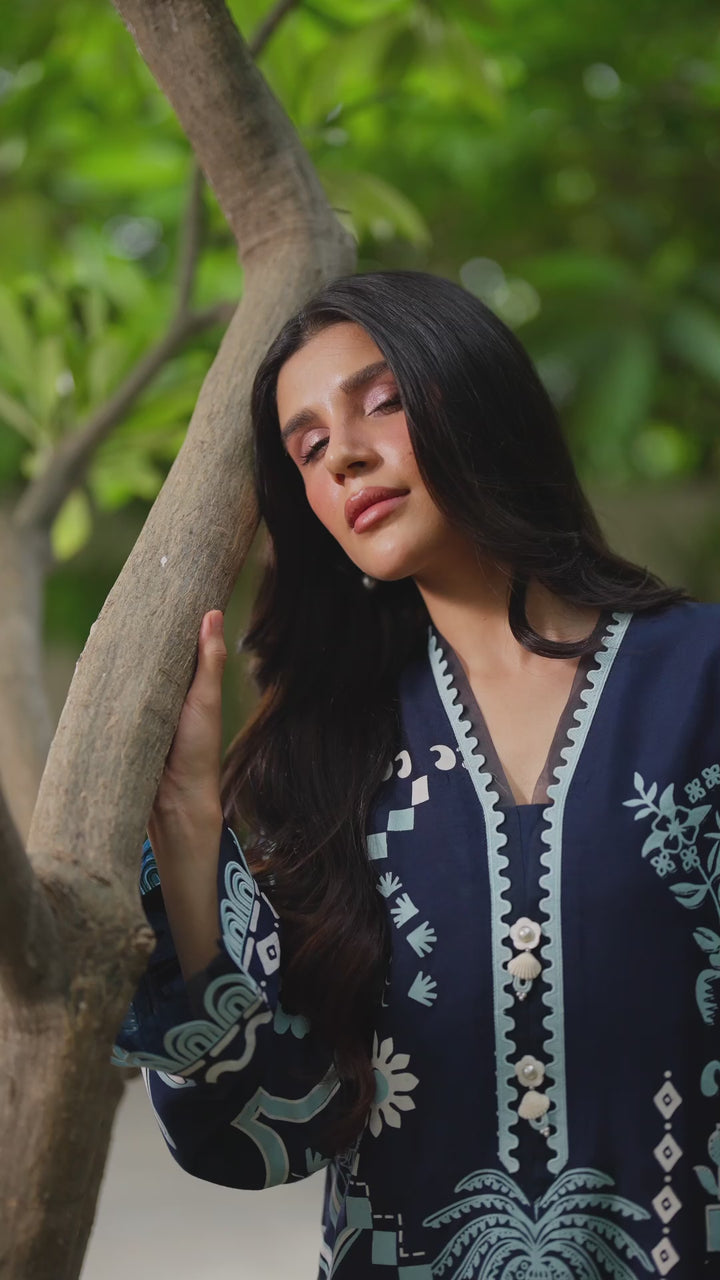 This screen-printed shirt is a masterpiece, beautifully detailed with intricate lace and finished with delicate pearl tassels. A true statement piece.